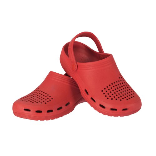 Zueco multifuncional fabricado en material EVA, ligero y confortable. Diseñado con orificios de ventilación que favorecen la transpiración del pie. El interior cuenta con una superficie texturizada que proporciona una sensación de mayor confort al caminar. Incorpora una tira trasera de sujeción, ajustable y rotatoria mediante fijación lateral, que permite llevar el calzado con mayor sujeción o en un estilo destalonado.